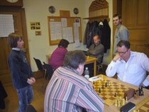 Am Ende der dritten Runde hatte sich Bernhard jedoch mit zwei Siegen und insgesamt 2,5 Punkten auf den 3. Tabellenplatz vorgearbeitet. Der Ötigheimer Joachim Kühn (ebenfalls 2,5 Punkte) und Klaus Knopf vom SC Weitenung (3,0 Punkte) waren die Spitzenreiter. Knopf verlor jedoch in der 4. Runde gegen Ast, und Kühn unterlag gegen Dr. Patrick Bruns vom OSC Baden-Baden. Somit ging Ast als neuer Tabellenführer in die Schlussrunde. Auch hier konnte sich der erfahrene Verbandsligaspieler gegen den jüngeren Kyamuran Mestan vom Veranstalter Ottenhöfen durchsetzen, und sich dadurch mit 4,5 Punkten den Titel sichern. Bernhard Ast, ein treuer Teilnehmer dieses Turniers, war nun bereits zum 2. Mal nach 2003 erfolgreich. Herzlichen Glückwunsch!