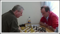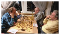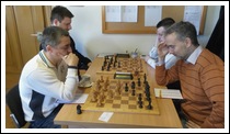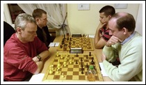 Positiv aus unserer Sicht war am Samstag in der 2. Runde der Gewinn von Kyamuran Mestan, unserem aussichtsreichsten Teilnehmer, gegen den deutlich stärker einzuschätzenden Hans-Erich Gubela (SF Sasbach). Kyamuran siegte auch in Runde 3 gegen Roland Laubis, und lag dann am Ende des Tages mitten im Kreis der Favoriten aussichtsreich auf dem 3. Platz. Vorne standen ? ebenfalls ohne Verlustpunkt - genau gleichauf: der DWZ-Beste Thilo Ehmann (SF Sasbach), sowie Seriensieger Frank Pluschke.