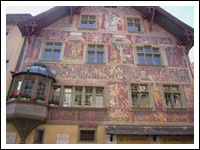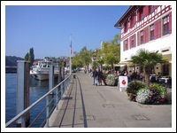Mit einem Passagierschiff der schweizerischen "Untersee und Rhein" -Schifffahrtsgesellschaft fuhren wir bei strahlendem Sonnenschein den Fluss aufwärts bis ins 20 km entfernte Stein am Rhein. Auch dort konnten wir in den mittelalterlichen Gassen viele prächtig verzierte und bemalte Häuserfassaden entdecken.
