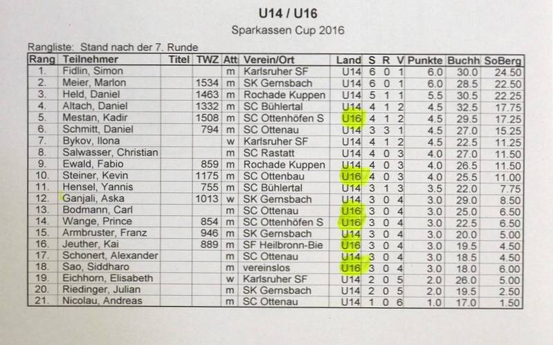 Unser derzeit bester Jugendlicher, der fleißige Turnierspieler Kadir Mestan, zeigte in Baden-Baden wieder ein überzeugende Leistung. Als 10. der Startrangliste konnte er sich bis auf Platz 4 in der Schlusstabelle vorarbeiten. Er erreichte dabei sehr gute 5.0 Punkte aus 6 Partien. Kadir musste sich nur dem späteren Turniersieger geschlagen geben.