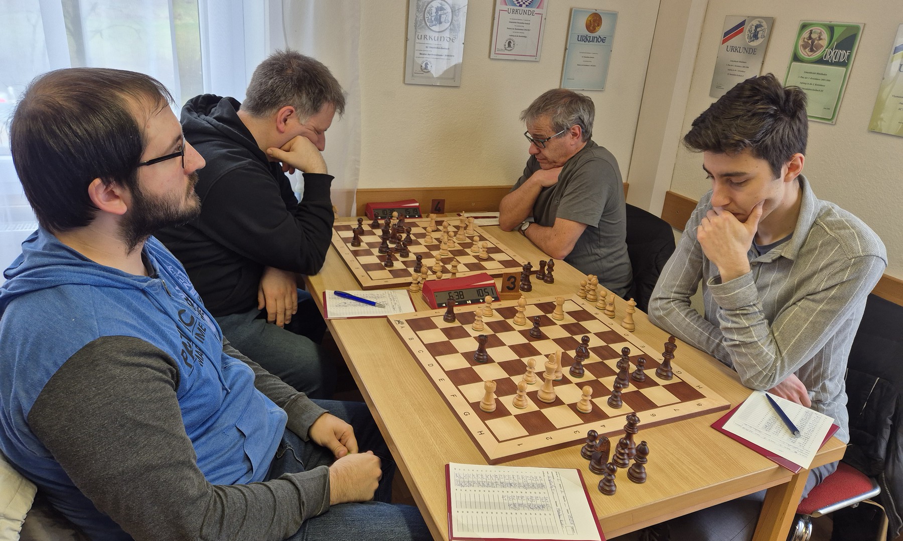 In der letzten noch laufenden Partie konnte Peter jedoch seinen Stellungsvorteil ausbauen, und den entscheidenden Punkt zum Matchgewinn einfahren. Sein Kontrahent gab schließlich einen Zug vor dem unausweichlichen Matt auf.